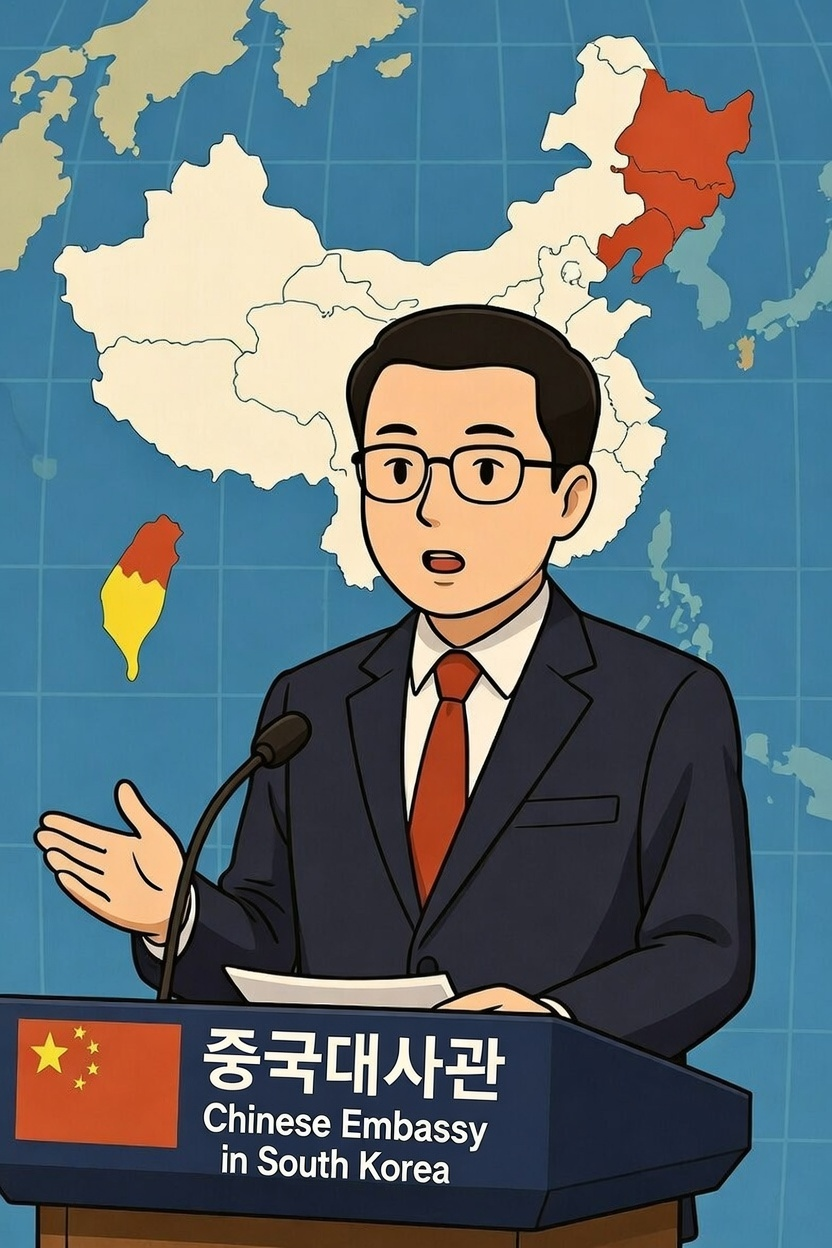 대만 문제는 순수히 중국의 내정이며, 중국의 핵심 이익 중 핵심이다. 대만은 중국의 한 성이다. '대만 독립'을 꾀하는 것은 중국 영토를 분열시키는 것이며, '대만 독립'을 지지하는 것은 중국 내정에 간섭하는 것이다. 중국 측은 어떤 국가도 어떤 형태로든 대만 지역과 공식 관계를 발전시키거나 정치적 의미를 지닌 활동을 전개하는 것을 단호히 반대한다. 한국 국회의원은 입법기관 구성원이자 민의 대표로서 공식적 지위와 중요한 정치적 영향력을 지닌다. 우리는 한국 국회의원이 대만 측과 교류하거나 대만 기관 인사를 행사에 초청하는 것을 분명히 반대한다. 어떤 정치 세력이 '중국 카드'를 이용해 정치적 이익을 추구하려 해도 성공하지 못할 것이다. 대만 문제를 빌미로 한중 관계를 방해·파괴하려는 어떤 시도도 한중 양국 국민이 용납하지 않을 것이라 믿는다.